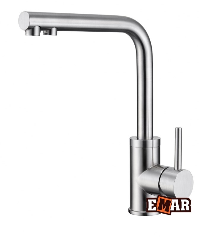 Кухонный кран из нержавеющей стали, наименования модели EMAR ЕСB - 7015. Смеситель с керамическим дисковым картриджем. Двухаэраторный, с функцией подачи питьевой воды. Рабочая температура подачи воды до 80 °С.